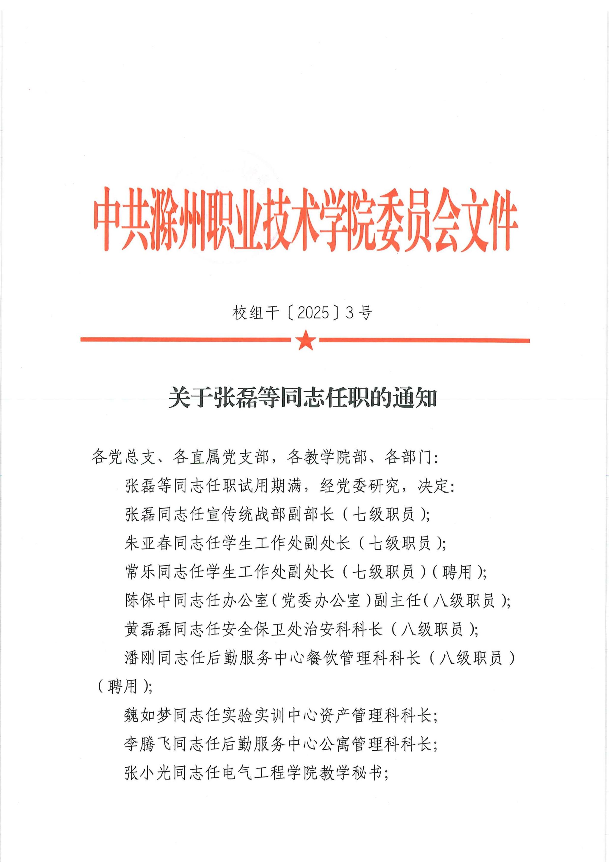 关于张磊等同志任职的通知